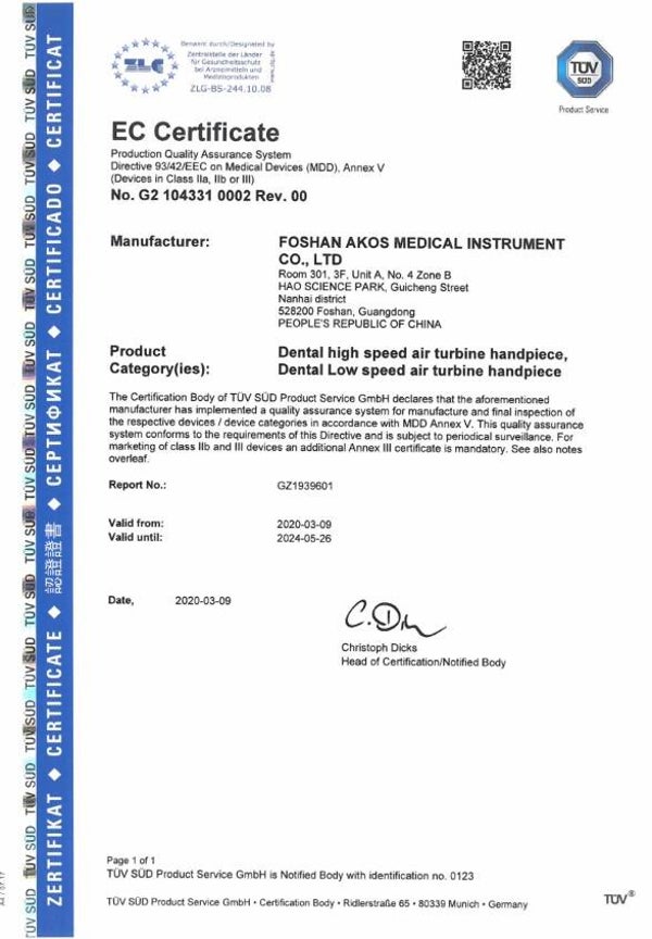20:1 Dental Implant Contra-angle Handpiece with Light.