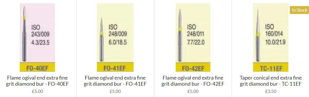 Flame ogival end extra fine grit diamond bur - FO-40EF